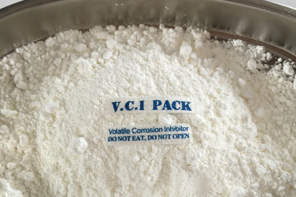 氣相防銹粉末多種特制的氣相緩蝕劑原料按一定配比均勻混合加工而成,具有水溶性,是一種新型的氣化性防銹材料。在密閉空間內(nèi),VCI經(jīng)氣化揮發(fā)到金屬的每個角落,吸附在金屬表面形成致密保護膜層從而起到防銹的作用